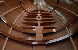 von formverleimten Rümpfen in WEST SYSTEM (Mahagonilamellen mit Epoxitharz verleimt)
