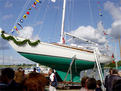 Er hat lange nach “seinem” Schiff gesucht, aber was er fand war oft zu marode und eine Totalsanierung so kostspielig, daß er sich am Ende entschloss, eine klassische Yacht neu bauen zu lassen. In Kiel bekam er Kontakt zum Konstrukteur Thomas Roeper, der nicht sich selbst verwirklichen wollte, sondern die Wünsche und Vorstellungen eines Auftraggebers umsetzen konnte. Die Aufgabenstellung war anfangs nicht genau definiert. Nur soviel stand fest. Die Neue sollte für lange Reisen etwa 10 Fuß länger werden als seine frühere “Svenholm”, die 1953 von Sparkman & Stephens gezeichnet wurde.
