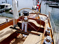 Darum arbeiten die Bootsbauer die Beschläge mit T-Profilen in die Steven ein, bevor sie die Blindsteven davorleimen. Diese Umsicht und Konsequenz in der Qualität, auch bei später unsichtbaren Strukturen, kann man durchaus als Inbegriff des klassischen Bootsbaus bezeichnen, wie ihn nur noch wenige Werften beherrschen. Wissen Eigner und Konstrukteur mit gleichen Vorstellungen diese Fähigkeit zu nutzen, entsteht eine Yacht mit klassischen Merkmalen, die trotz moderner Ausführung kaum von ihren Vorbildern zu unterscheiden ist. Thomas Roeper hat “Katinka” zwar völlig formelfrei, nur nach den Schönheitsidealen und Vorgaben seines Auftraggebers konstruiert. Er gibt aber zu bedenken, daß die meisten Yachten die wir als klassisch bezeichnen, nach Vermessungsformeln entstanden sind, die Überhänge geradezu züchteten.